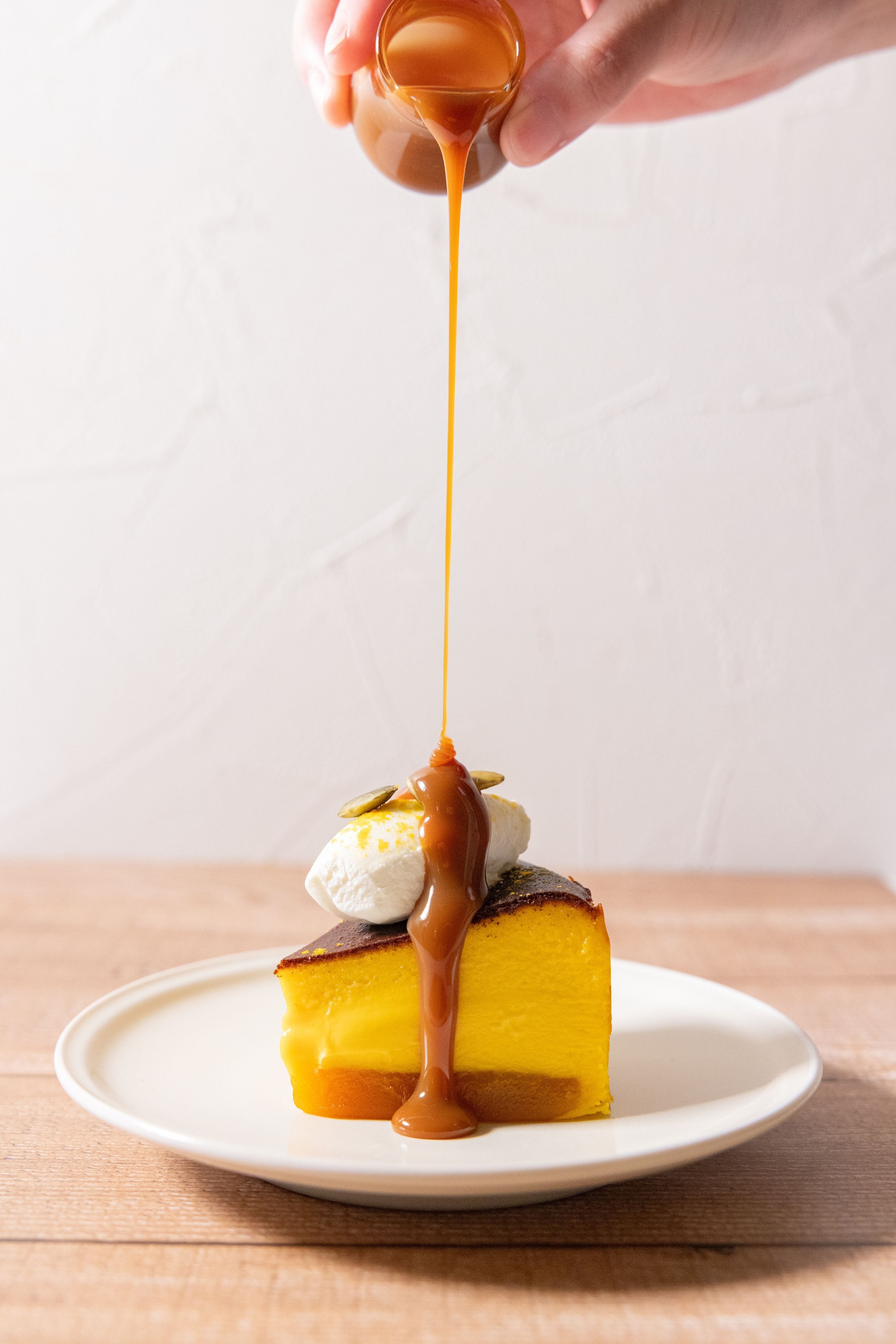 通常のバスクチーズケーキに旬のカボチャを取り入れ、口にするとふわっと広がるカボチャの香り、そしてまろやかな舌触りに濃厚なかぼちゃの旨味と甘味を堪能できる逸品です。