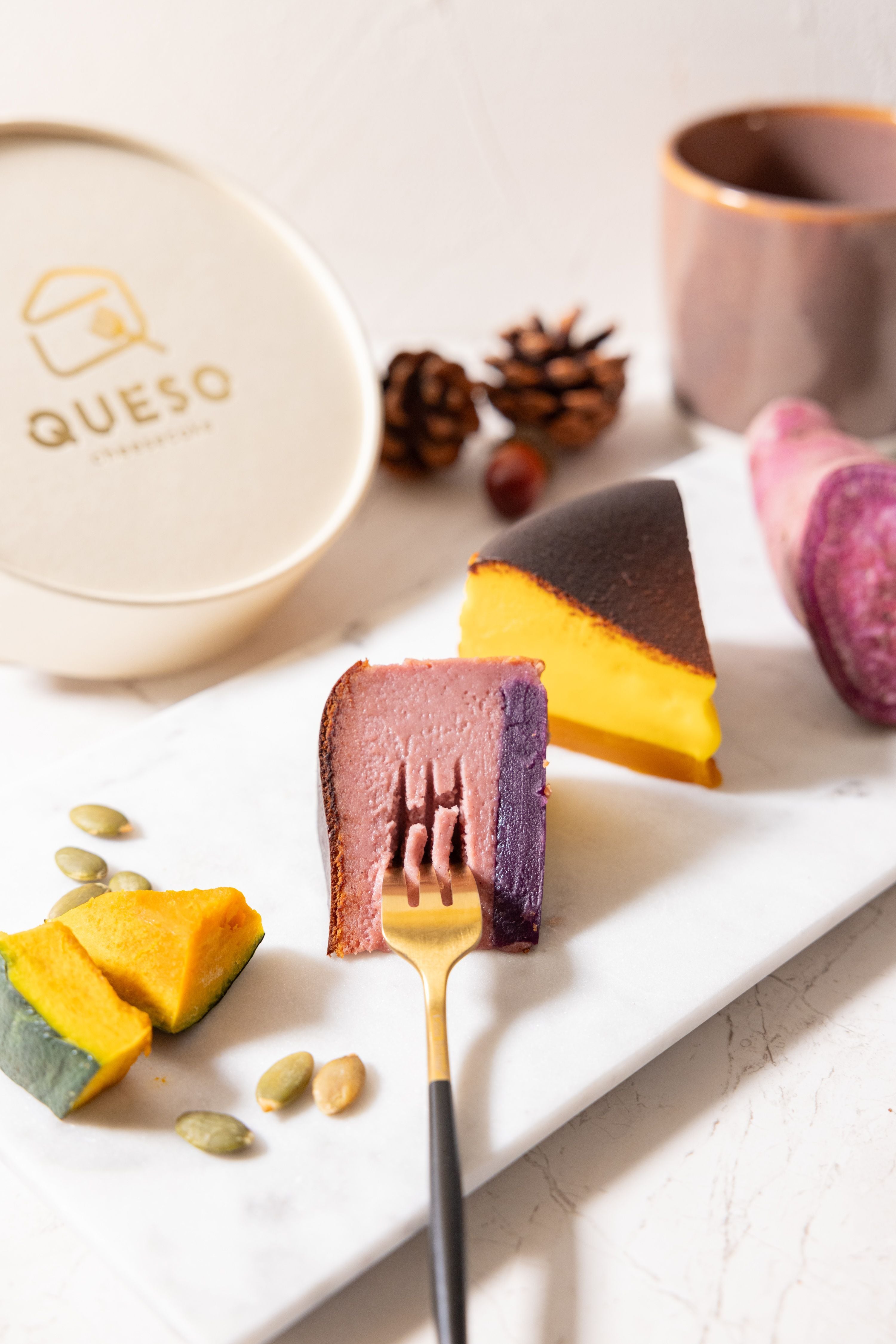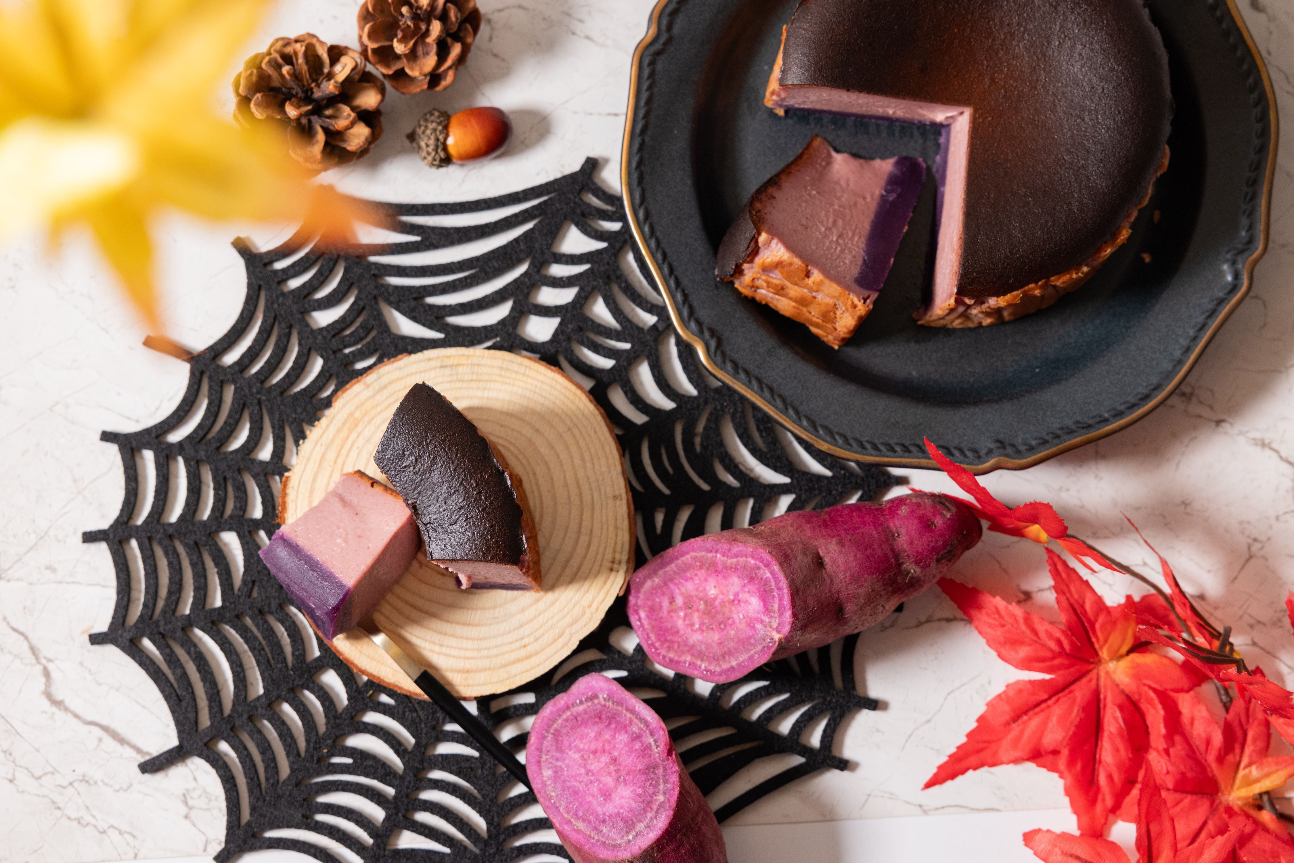 今年はボトムに「紫芋餡」を忍ばせることで、紫芋のバスク生地の芳醇な香りと、餡の舌触りの良い、上品な甘さが絶妙なバランスです。