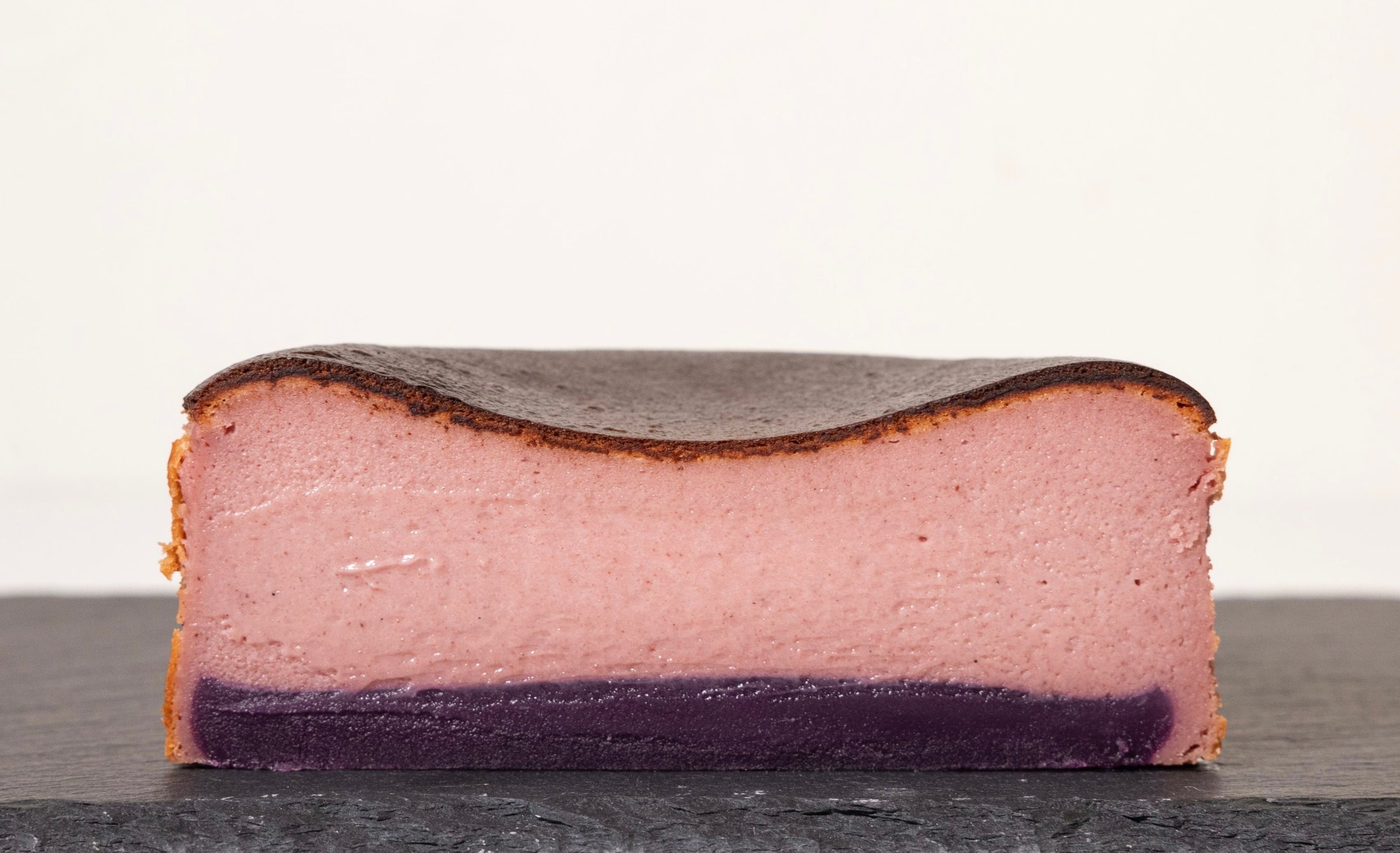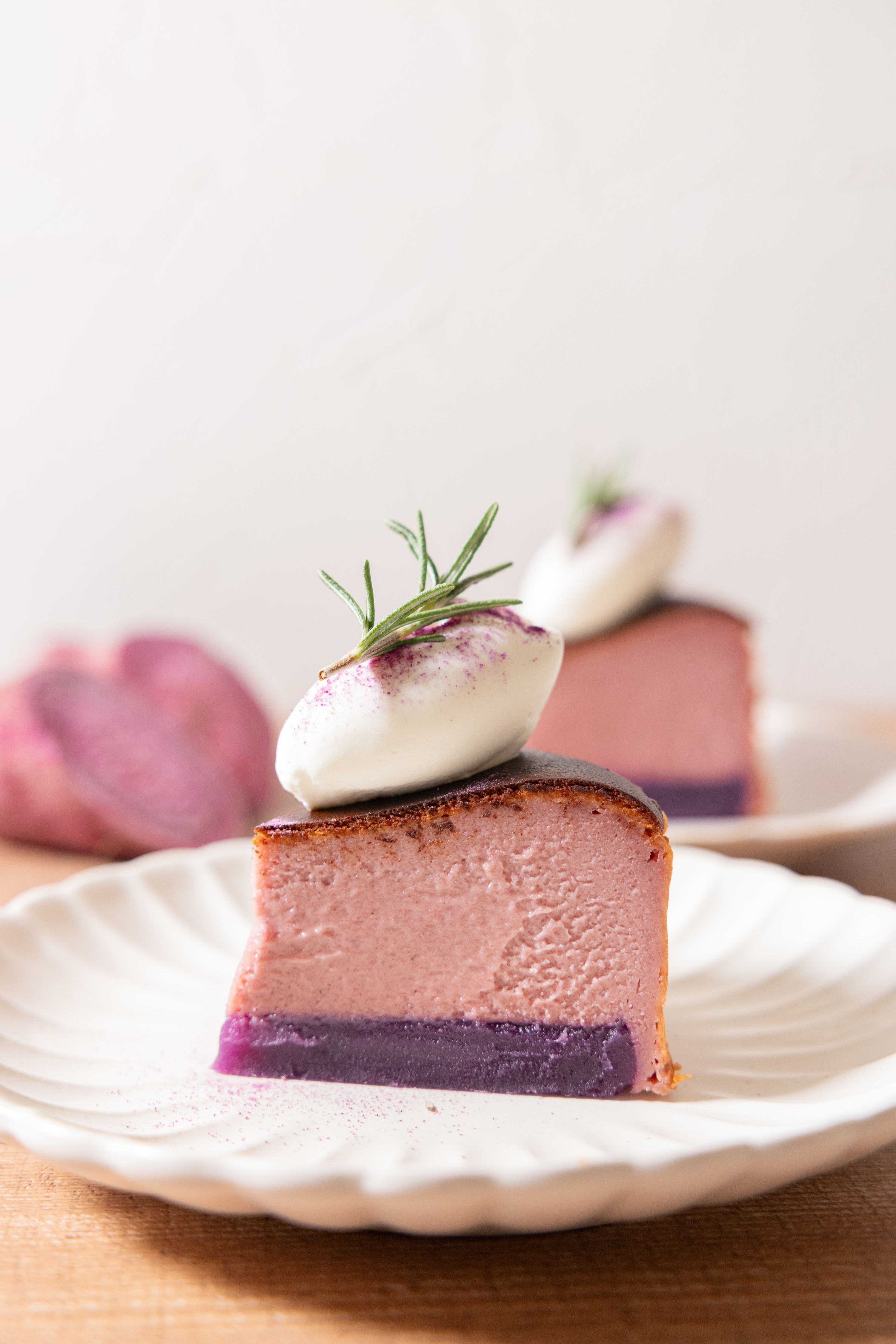 通常のバスクチーズケーキに国内産の紫芋を加え、ほっこりとした芋特有の甘味と鮮やかな紫色が特徴の一品です。