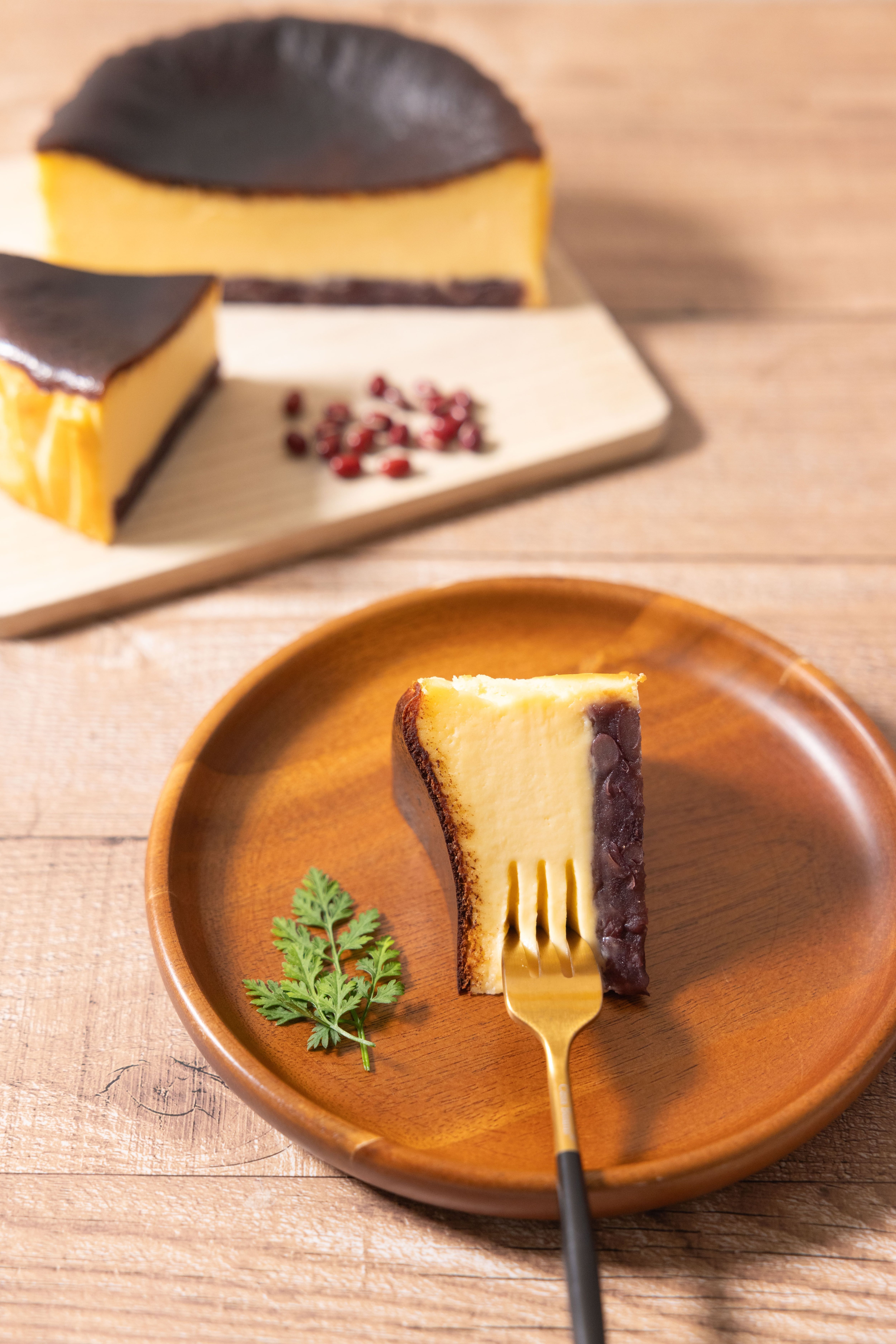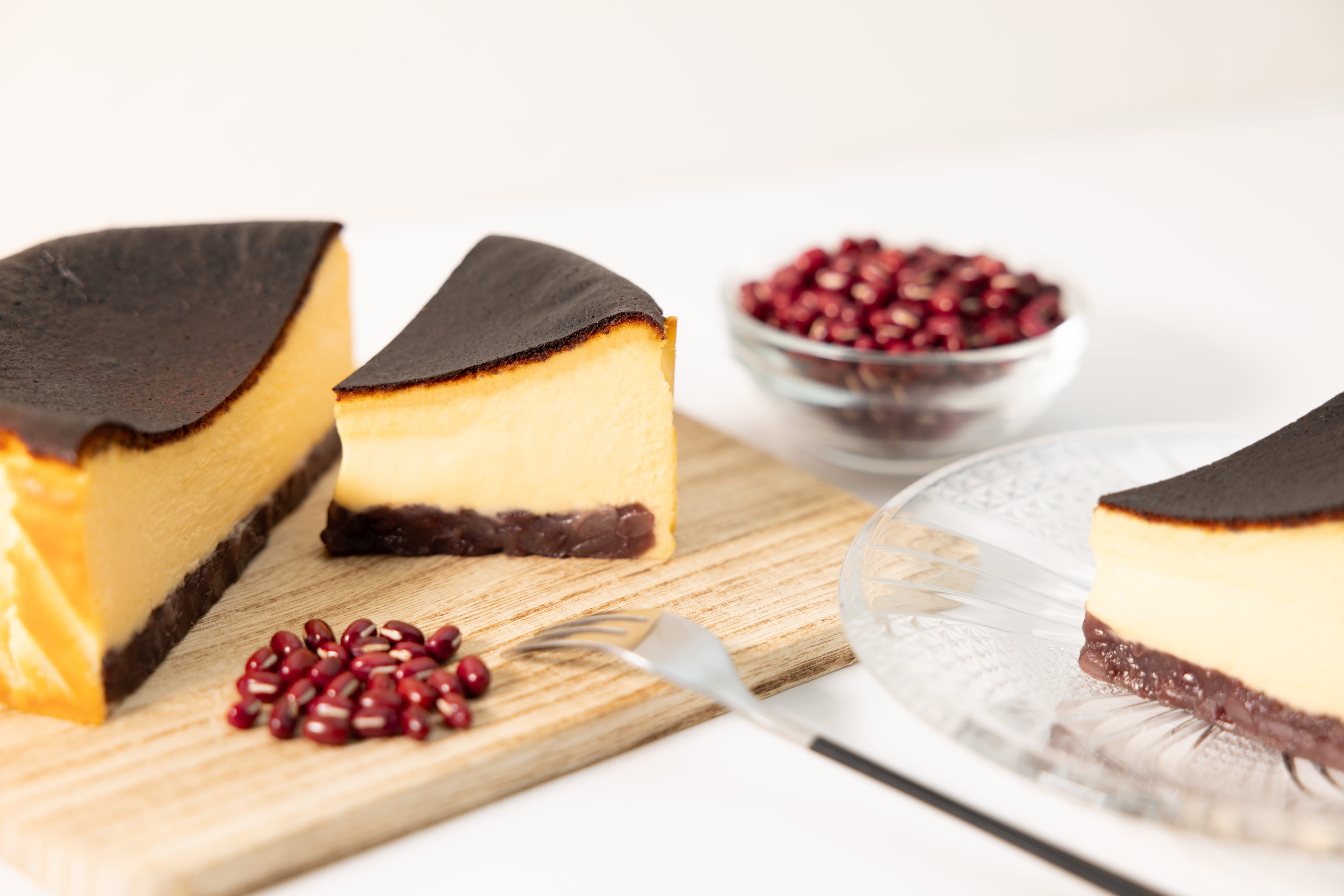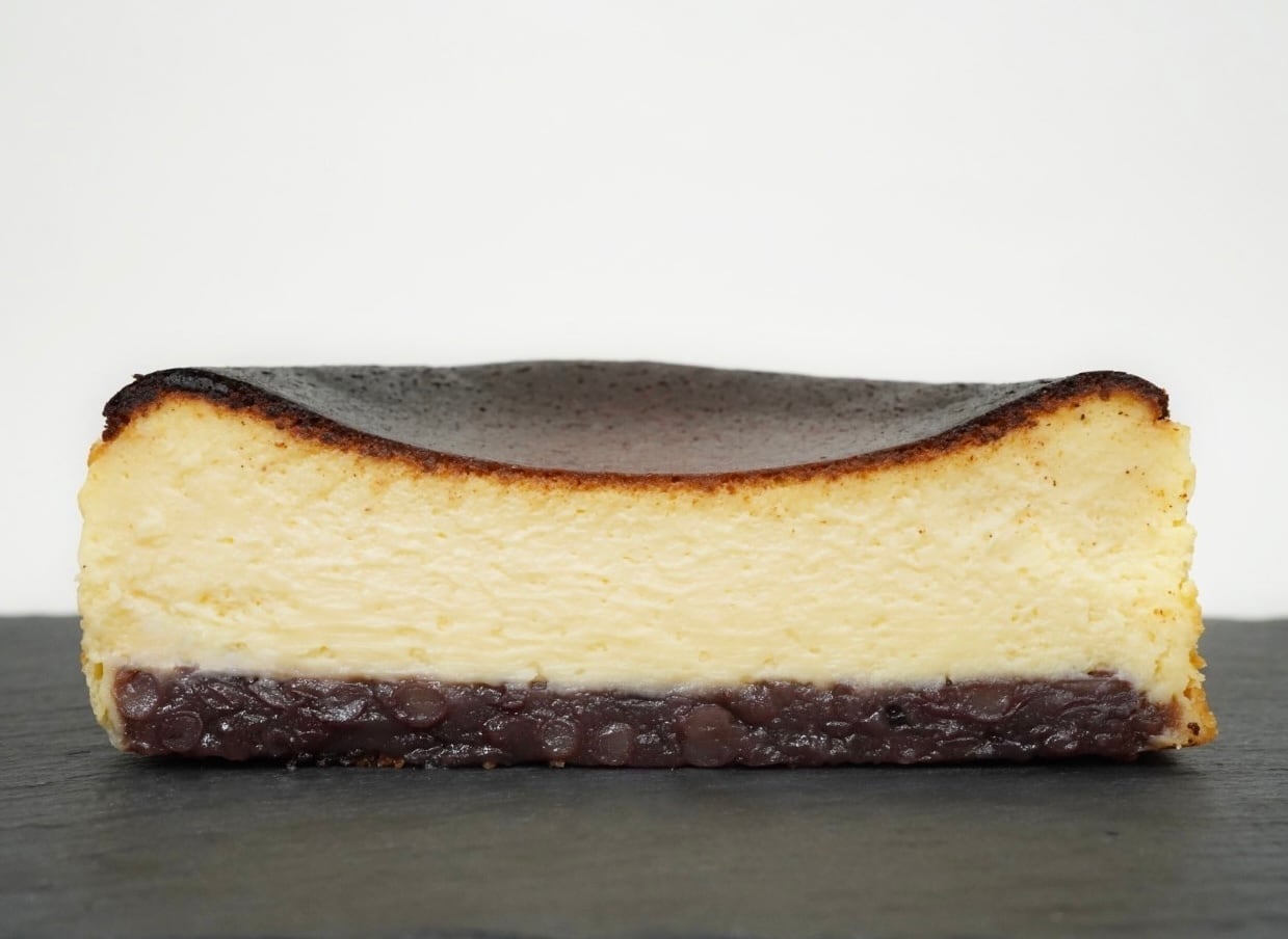 通常のバスクチーズケーキに北海道産の上質なつぶ餡を掛け合わせたチーズケーキとなります。